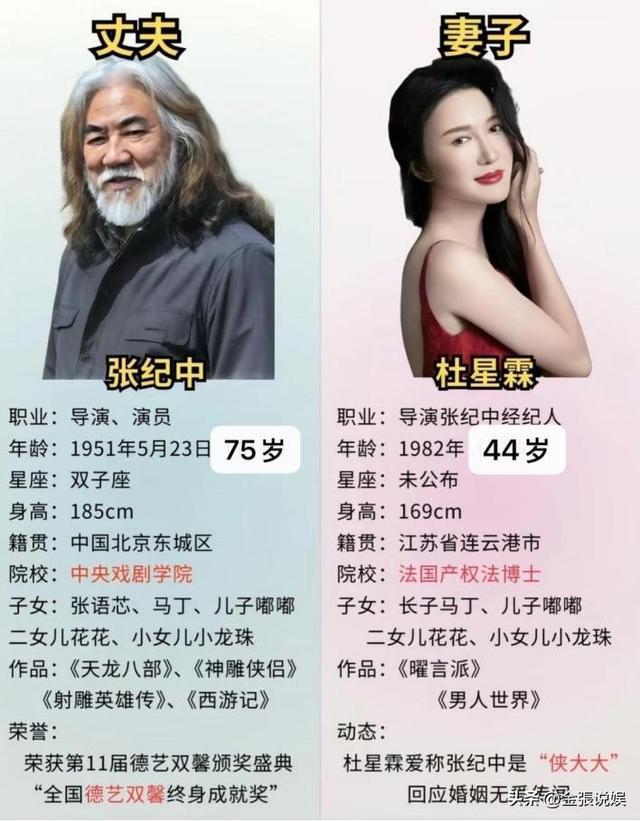 彼时张纪中66岁,杜星霖35岁,年龄差整整31岁。