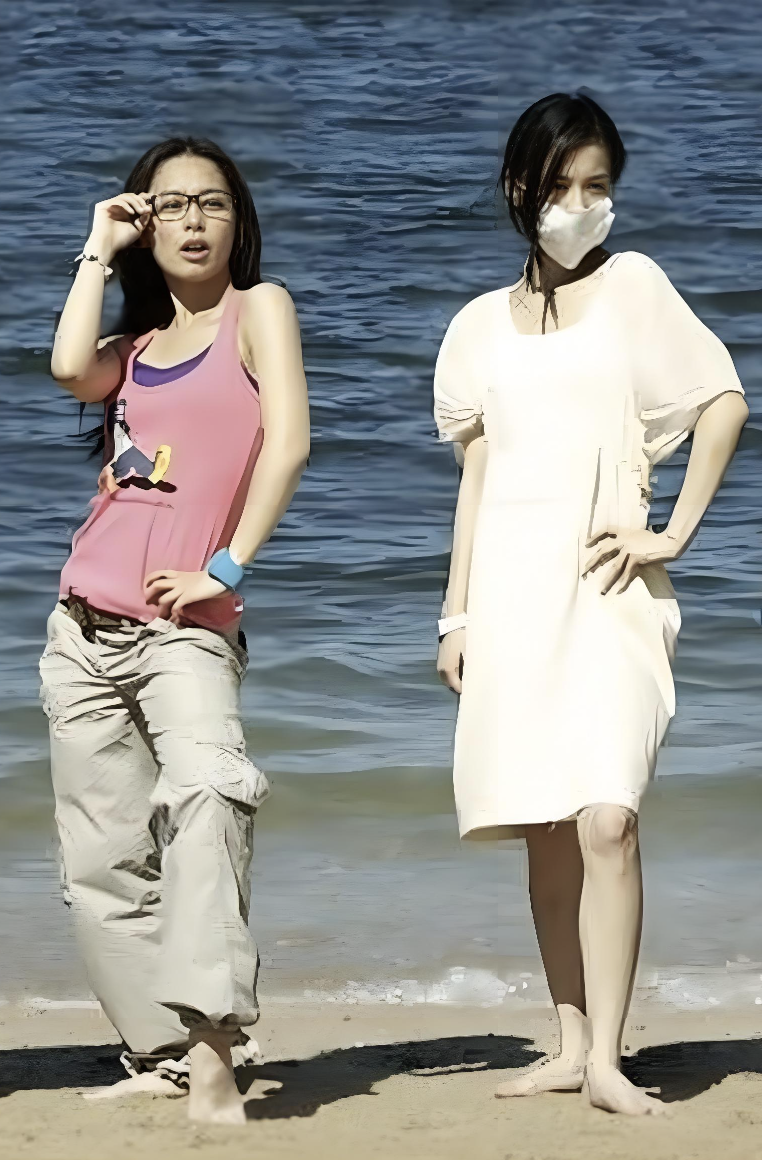 两人都赤脚黄圣依看着比阿娇高一点,不过阿娇腿部弯的弧度更大,如果是站直估计跟上图也差不多。