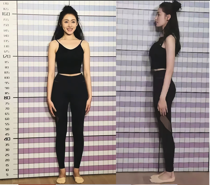后来又光脚测过一次,视觉上也是165cm,但还是有网友指出是高颅顶蓬松发型的缘故。