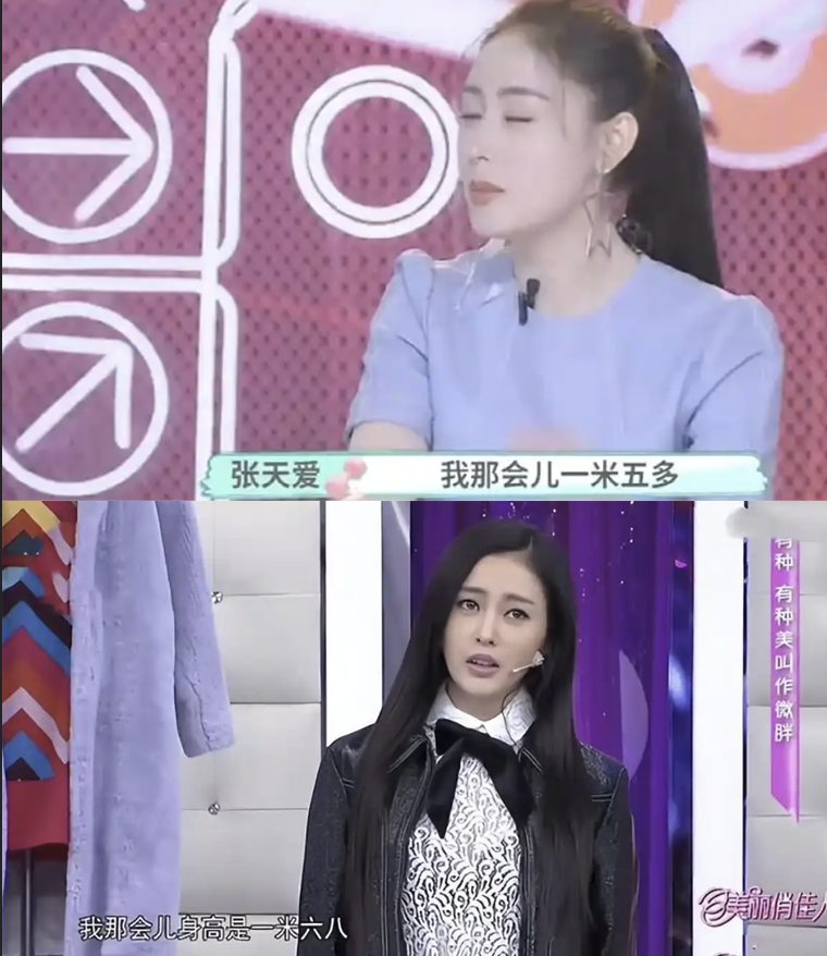 对此张天爱特意在节目中量身高自证,现场确实量出165cm。不过有网友指出,张天爱并不是光脚而是穿着袜子,袜子似乎内含内增高,而且梳着蓬松的高发髻也拔高了视觉效果。