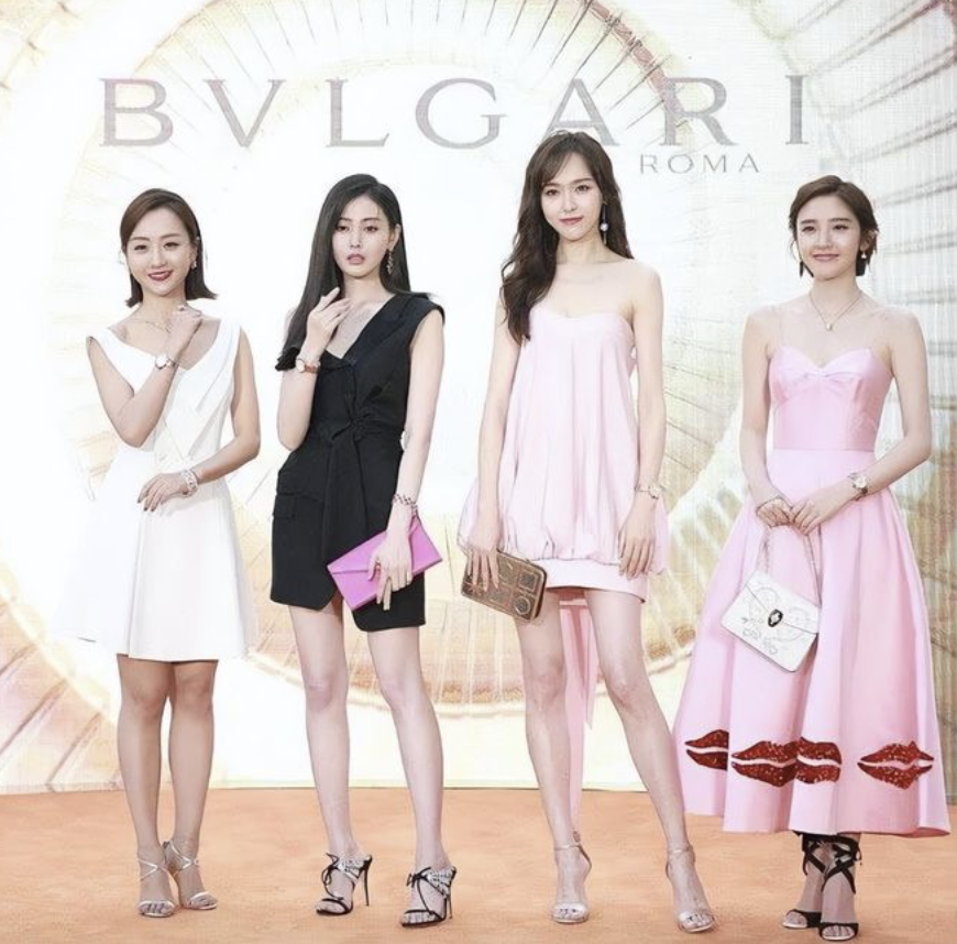 只拍上半身的单人照的确能营造出高个子的视觉感,但只要她一跟真正高个子的女明星同台就立马“露馅”。